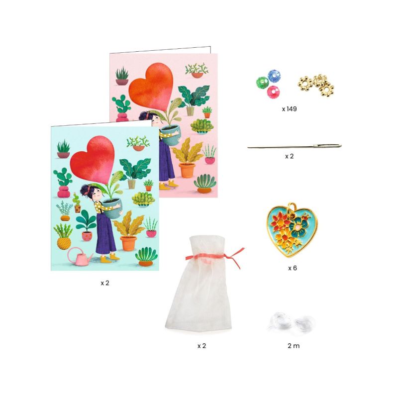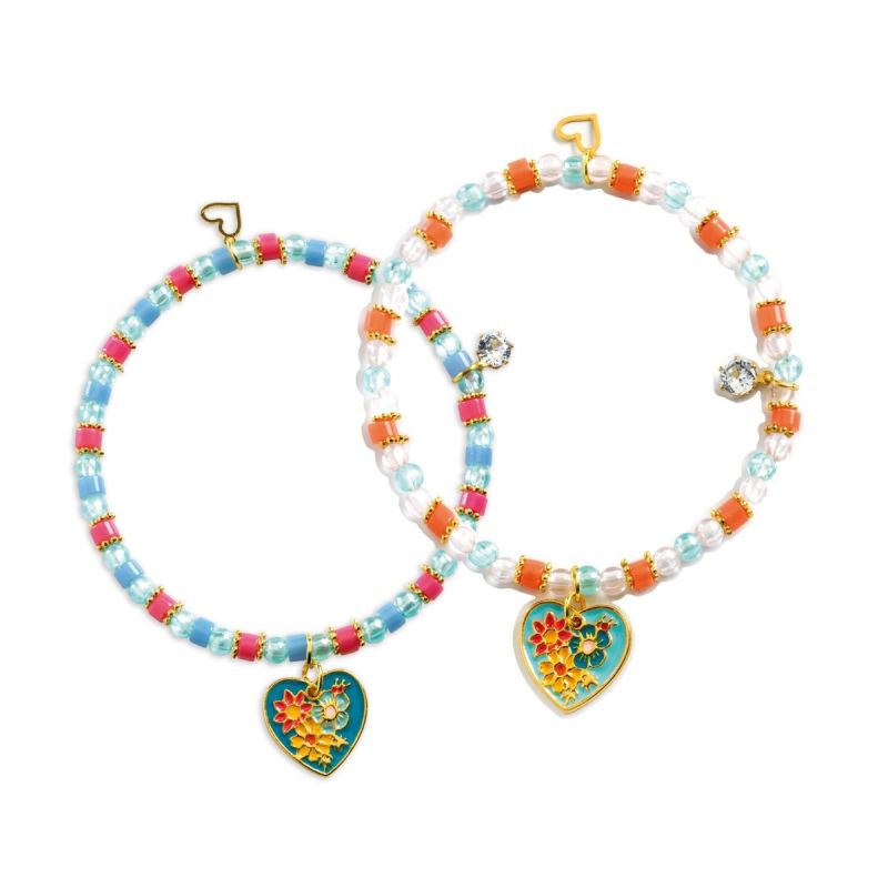 Æsken indeholder alt, hvad jeres barn skal bruge for at lave de flotteste armbånd med perler og vedhæng af hjerter. En fin gavepose og vejledning medfølger i Djeco æsken.
