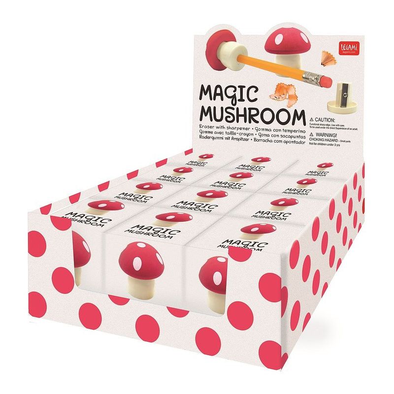 Her i Banditten har vi et stort udvalg i DIY og artikler til både skole og leg. Vores viskelædere findes i et utal af varianter, og her kan vi præsentere en blyantspidser og viskelæder i form af en Magic Mushroom.