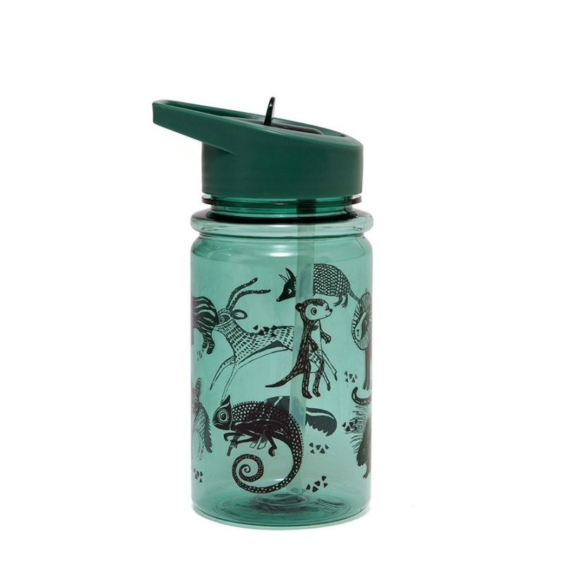 Denne smarte transparente drikkedunk er illustreret med et fint motiv af vilde dyr. Drikkedunken har PP bund og låg samt tud.