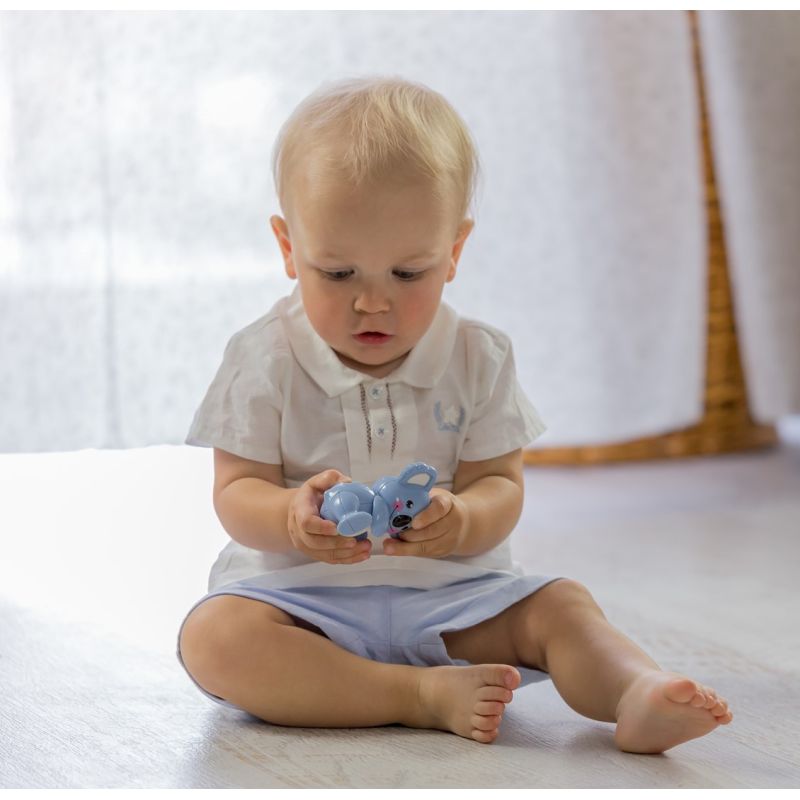 Koalaen fra First Friends-serien er en skøn legekammerat til børn i alderen 1-5 år. Med dens klare farver og søde, venlige udtryk vil den helt sikkert vække glæde hos ethvert barn. Koalaen har bevægelige fødder, arme og hoved, som giver en behagelig klikke-lyd og stimulerer barnets hørelse.