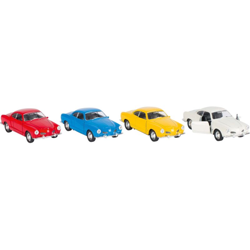 Denne seje Modelbil Ghia Coupé kan trækkes tilbage og suse afsted! Den findes i blå, gul, hvid og rød og har fine detaljer.