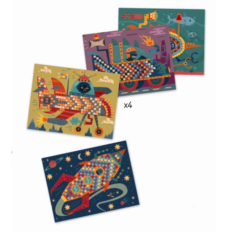 Her i Banditten har vi et stort udvalg i sæt til det kreative barn, og dette flotte sæt indeholder 4 motiver med forskellige fartøjer, der skal friskes op med de medfølgende mosaikker. Motiverne har fortrykte numre, og hvert nummer har hver sin farve.