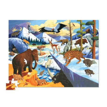 Crocodile Creek har lavet nogle fantastiske puslespil, og dette fine puslespil med motiv af et utal af flotte dyr fra istiden, er et af dem.