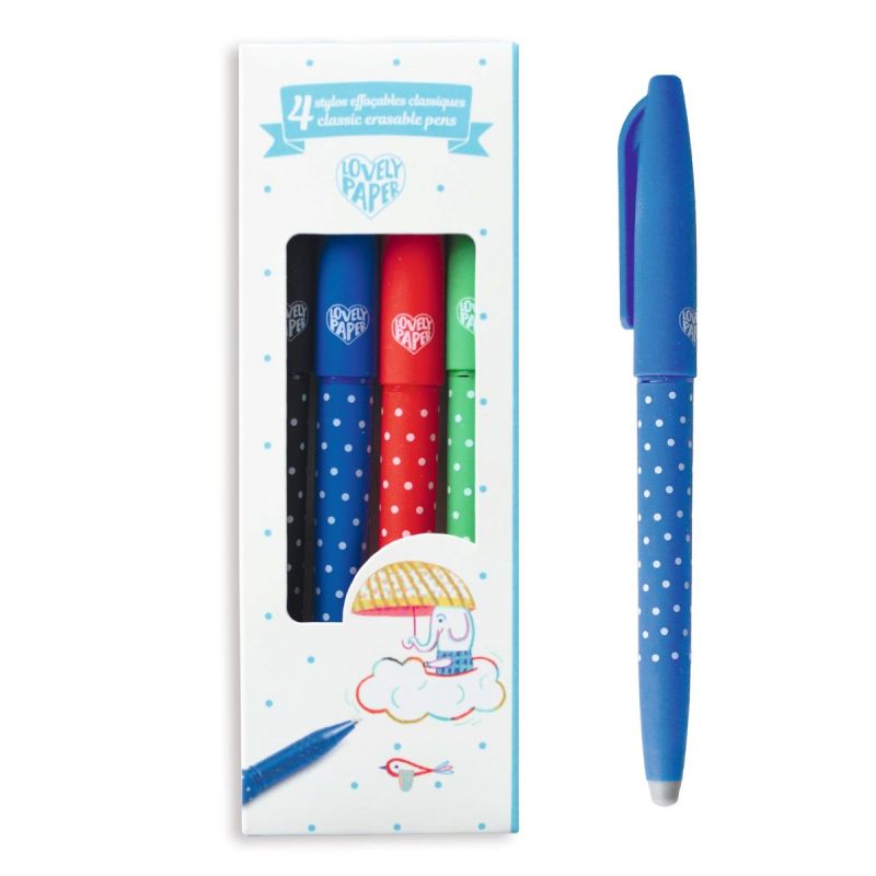 Her i Banditten har vi et stort udvalg i penne, og her kan vi præsentere noget helt specielt, nemlig 4 stk. kuglepenne, der kan slettes.