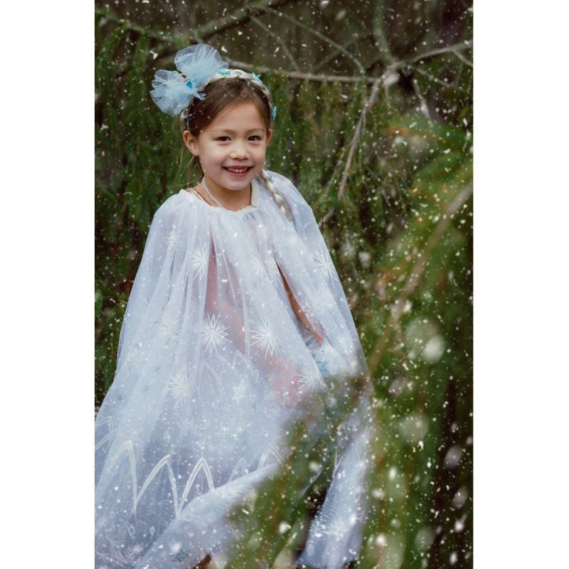 Med sine delikate, iskrystalprint og skinnende detaljer glitrer kappen som frostkysset sne, hvilket gør den ideel til vinterinspirerede fejringer og udklædningslege. Winter Wonderland Cape passer til enhver lille prinsesse eller vinterens helt, og er skabt til at fortrylle både fødselsdage og leg.