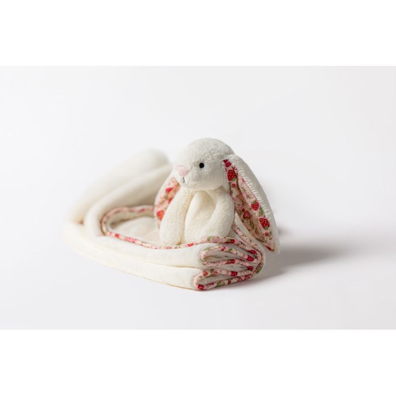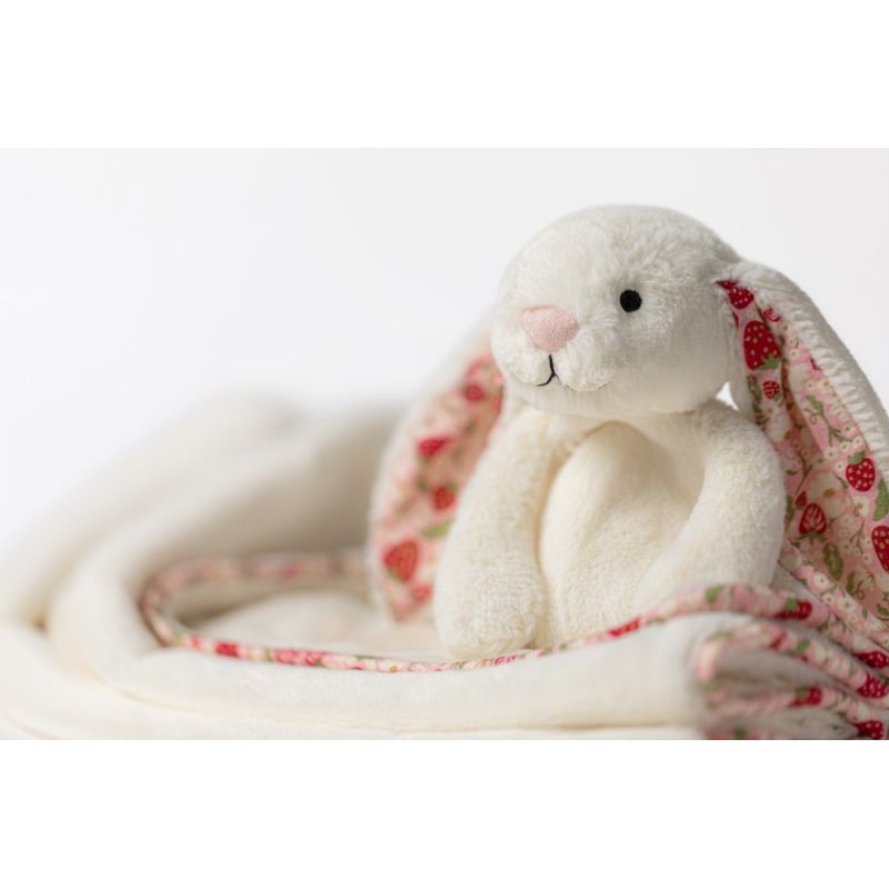 Skøn Strawberry kanin bashful tæppe fra Jellycat!