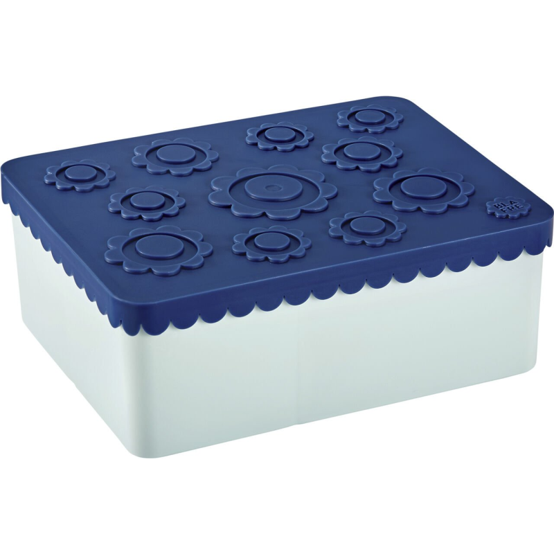 Trænger jeres barn til en ny madkasse er her en flot Marineblå & grøn madkasse med dekoration af flotte blomster, der nok skal gøre lykke hos jeres barn.
