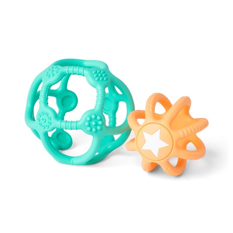 De søgrønne og ferskenfarvede sensoriske bolde fra Little L er et sandt hit hos de mindste. Med deres bløde, fleksible silikone er de både lette at gribe om med små hænder og perfekte som bidelegetøj, når de første tænder begynder at drille. Boldene er skabt i 100 % fødevaregodkendt silikone – helt fri for BPA, latex, PVC og phthalater – og kan derfor trygt komme med overalt.