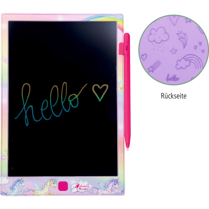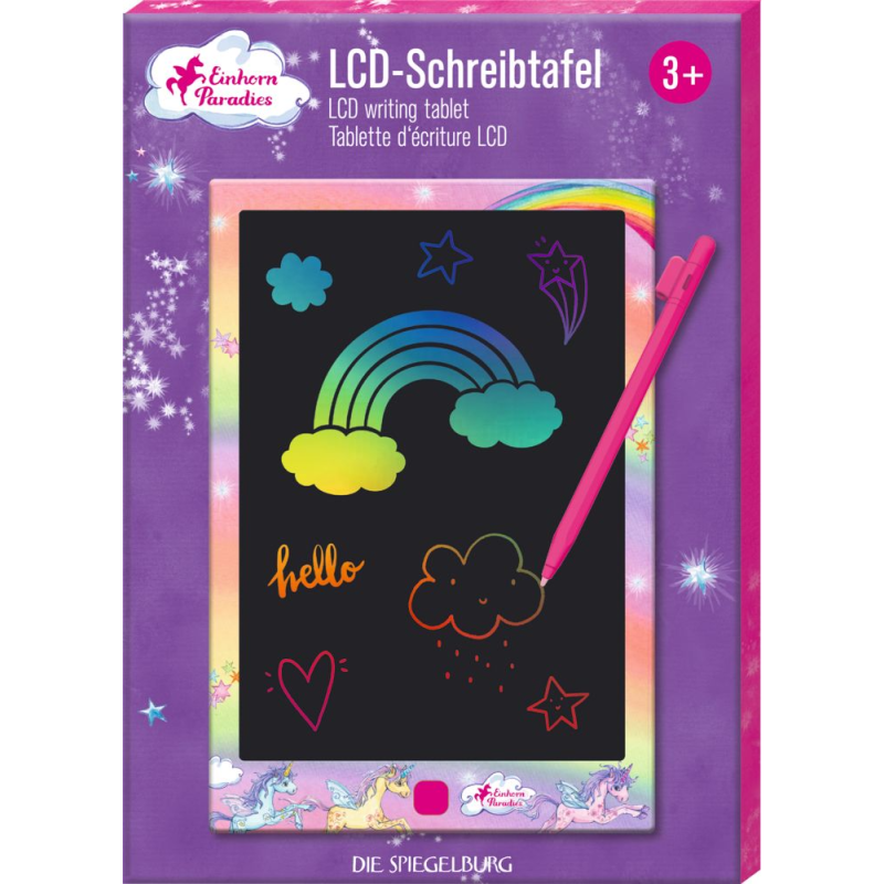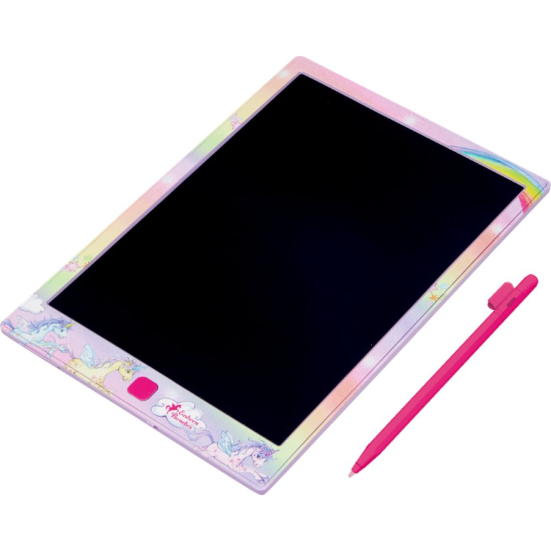 At tegne på tegnetavle er et hit hos børnene, og her kan vi præsentere en Enhjørning LCD tegnetavle med tegninger og noter i regnbue farver, der gør det ekstra spændende at lave fine kreationer.