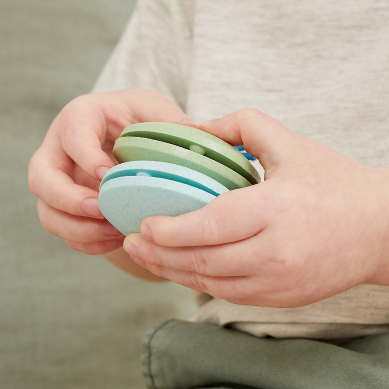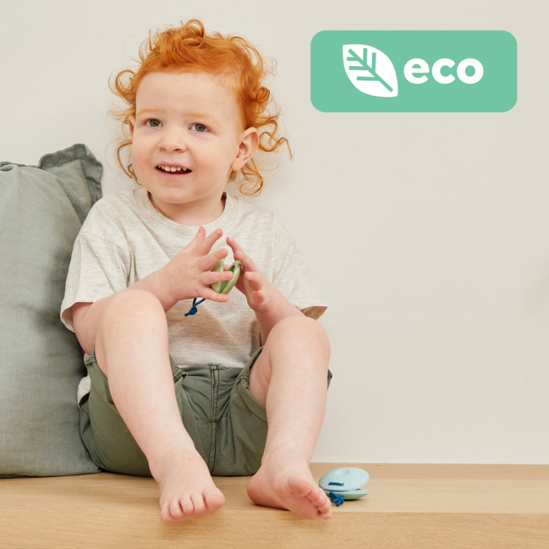 Kastagnetterne er lavet i BIOplastik og lavet til små hænder. De udmærker sig ved at styrke barnets motorik og sanser.