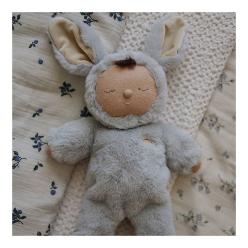 Smoke Kanin fra Olli Ella er en helt særlig ven at putte med – blød, tryg og fyldt med magi. Med sin grå pels, lange bløde kaninører og de fineste broderede detaljer, er denne Cozy Dinkum dukke skabt til at følge barnet gennem både leg, puttetid og rolige stunder.