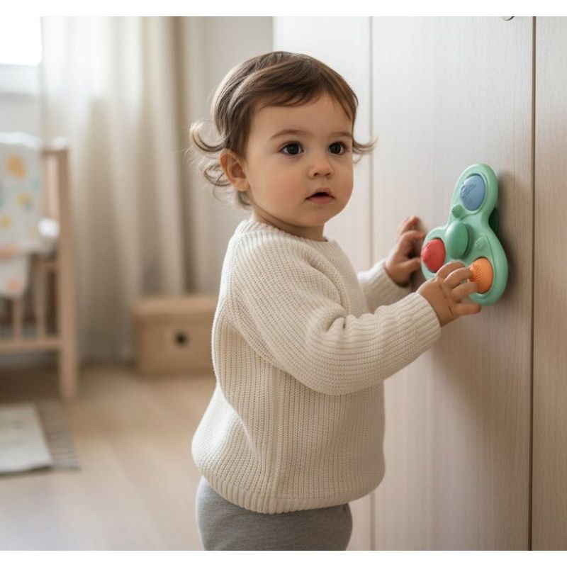 En sjov og engagerende barselsgave eller dåbsgave, som opfordrer til sanseleg, finmotoriske færdigheder og årsag-virkning læring. Fremstillet af en blød silikone til sensorisk leg til børn fra +6 mdr.