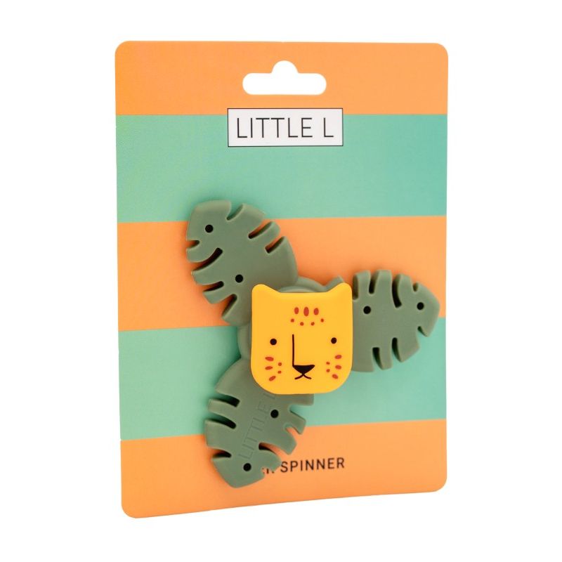 Tiger Spinner fra Little L forvandler selv den mindste bevægelse til stor magi. Den søde tiger snurrer let og lydløst, mens de bløde bladformede vinger inviterer til nysgerrig leg, fingergymnastik og sanseoplevelser. Spinneren hæfter sig fast på glatte overflader som vinduer, skabe og fliser, så legen kan følge med i hele hjemmet – i badet, i højstolen eller på værelset.