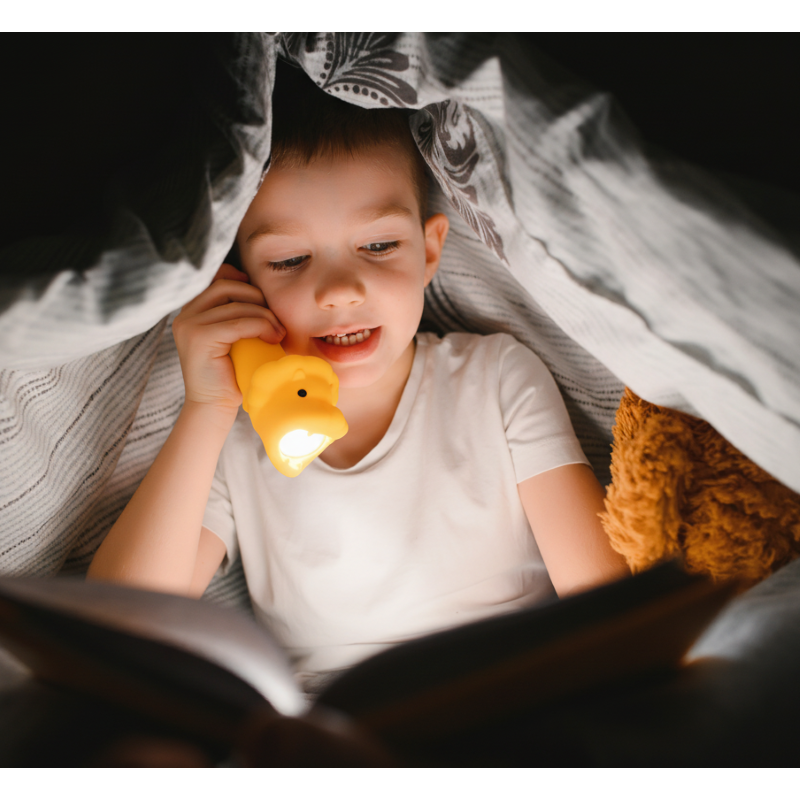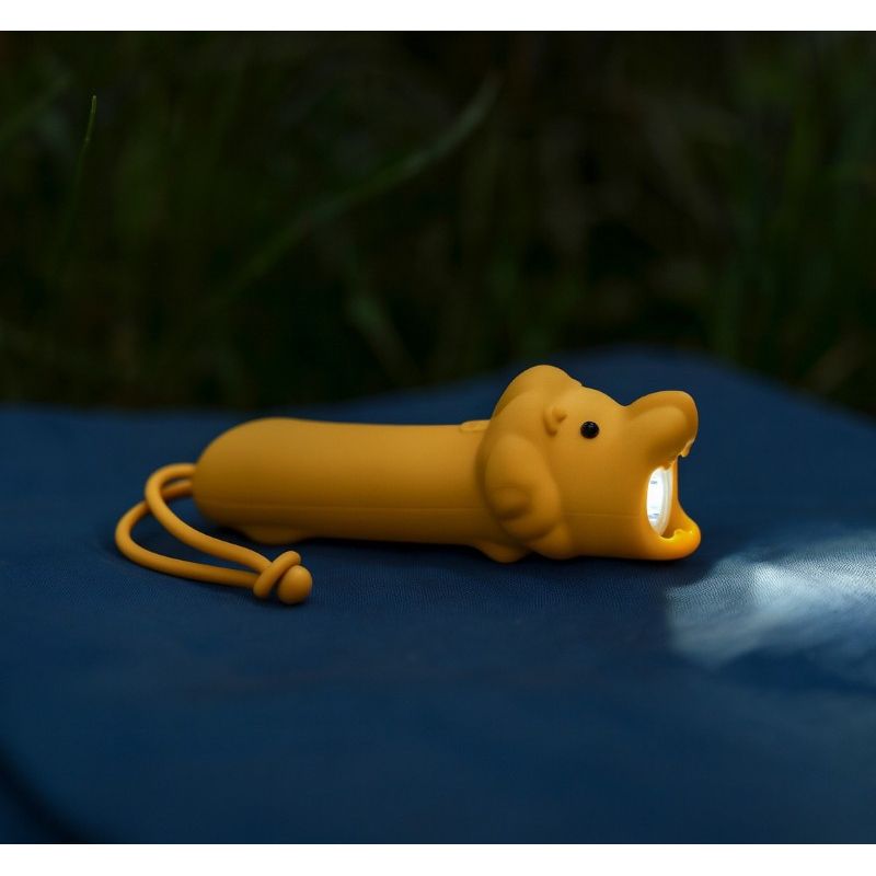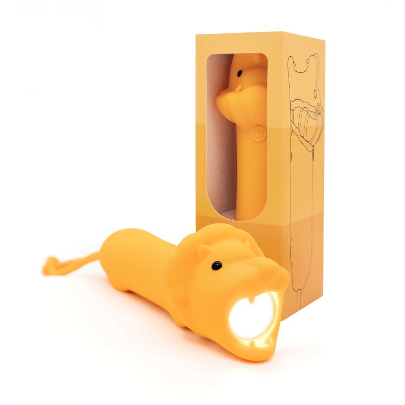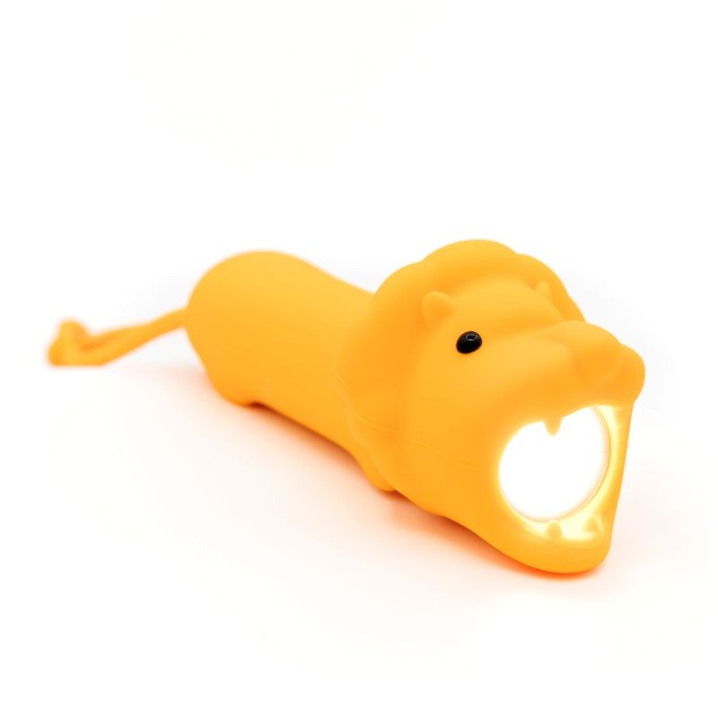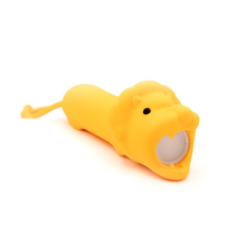 Lommelygten har et lyst blødt lys, der kommer ud af løvens mund, når man trykker den på ryggen. Lommelygten er dejlig at holde om med den bløde silokoneoverflade.