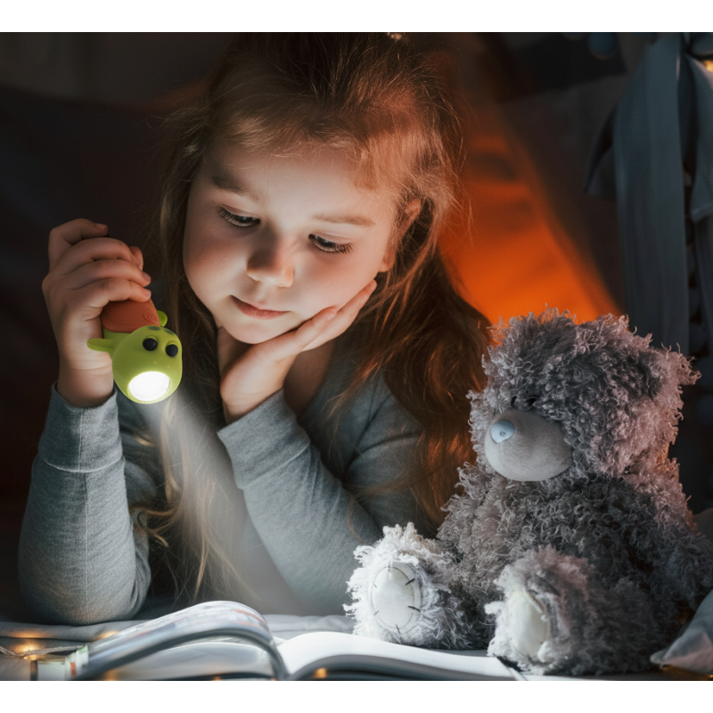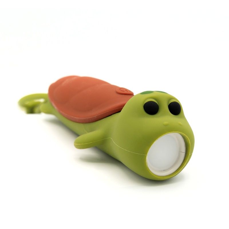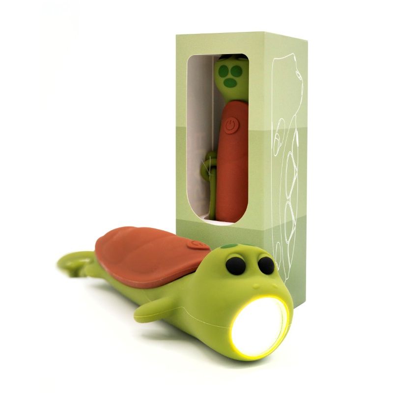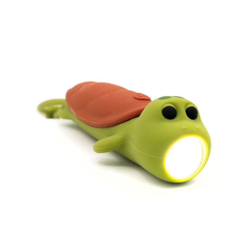 Lommelygten har et lyst blødt lys, der kommer ud af Skildpaddens mund, når man trykker den på ryggen. Lommelygten er dejlig at holde om med den bløde silokoneoverflade.