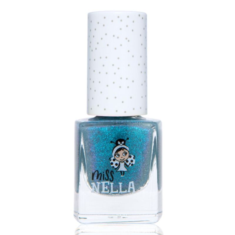 "Dyk ned i farvernes fortryllende verden med Miss Nellas børnevenlige neglelak. De fås i et bredt spektrum af fine farver – og alle er de magi på flaske, helt uden skadelige kemikalier. Neglelakken er lugtfri, miljøvenlig, vandbaseret og let at pille af igen – helt uden behov for neglelakfjerner. Perfekt til små hænder med store drømme og en kærlighed til kreativ leg! Der er 4 milliliter i en flaske. Her får du neglelakken i en blå farve kaldet Blue the Candles!"