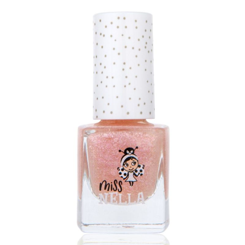 "Dyk ned i farvernes fortryllende verden med Miss Nellas børnevenlige neglelak. De fås i et bredt spektrum af fine farver – og alle er de magi på flaske, helt uden skadelige kemikalier. Neglelakken er lugtfri, miljøvenlig, vandbaseret og let at pille af igen – helt uden behov for neglelakfjerner. Perfekt til små hænder med store drømme og en kærlighed til kreativ leg! Der er 4 milliliter i en flaske. Her får du neglelakken i en lyserød farve kaldet Abracadabra!"