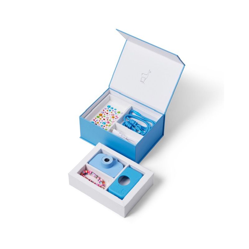 Det hele kommer i en fin æske, der også kan bruges som smykkeskrin til små skatte og yndlingssager. Kameraet tager billeder i op til 12 megapixel og videoer i 720P, og med USB-C opladning er det klar til brug igen på kun 1–1,5 time. Menuen kan indstilles på flere sprog, så det er nemt for børn i alle aldre at bruge.