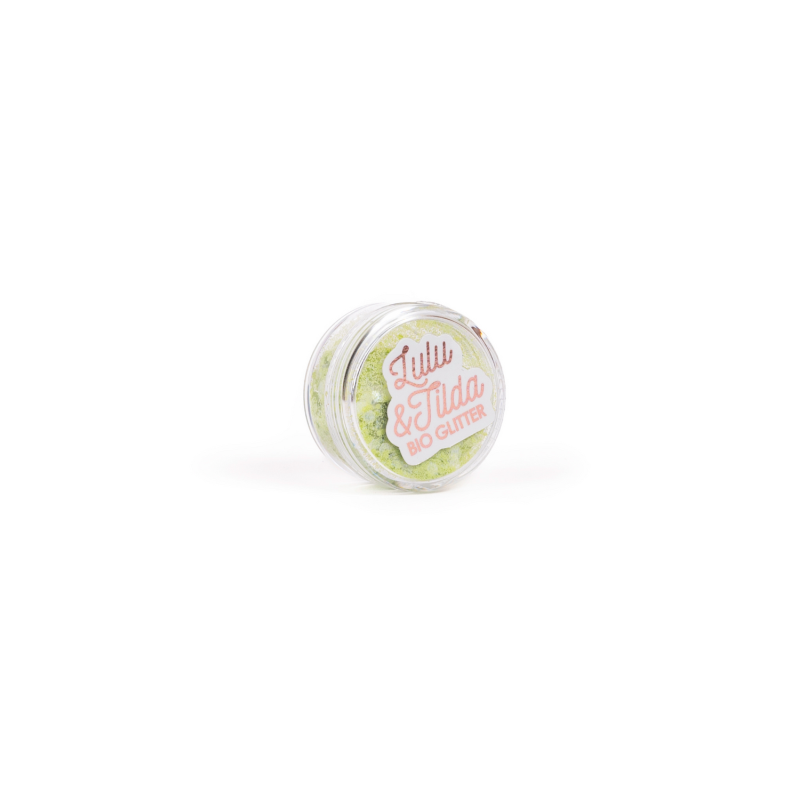 Eco Bio Glitter fra Lulu & Tilda er fremstillet af biologisk nedbrydelige materialer og er 100 % plastfrit, så barnet kan skinne med god samvittighed. Glimmeret leveres som løst glitter, så det kan bruges præcis, som fantasien dikterer – med en pensel eller fingerspidserne.