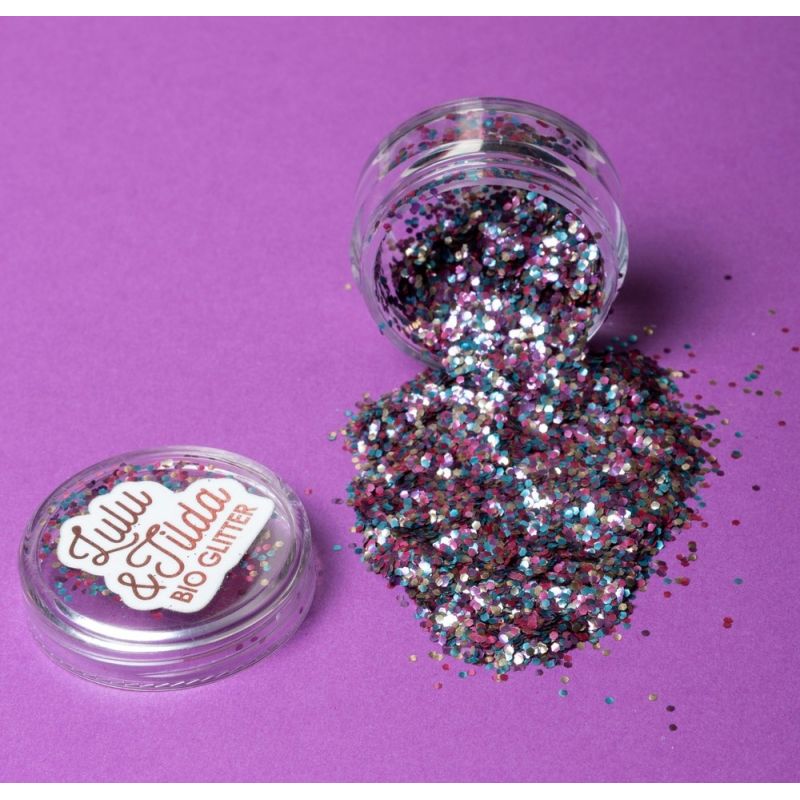 Eco Bio Glitter fra Lulu & Tilda er fremstillet af biologisk nedbrydelige materialer og er 100 % plastfrit, så barnet kan skinne med god samvittighed. Glimmeret leveres som løst glitter, så det kan bruges præcis, som fantasien dikterer – med en pensel eller fingerspidserne.