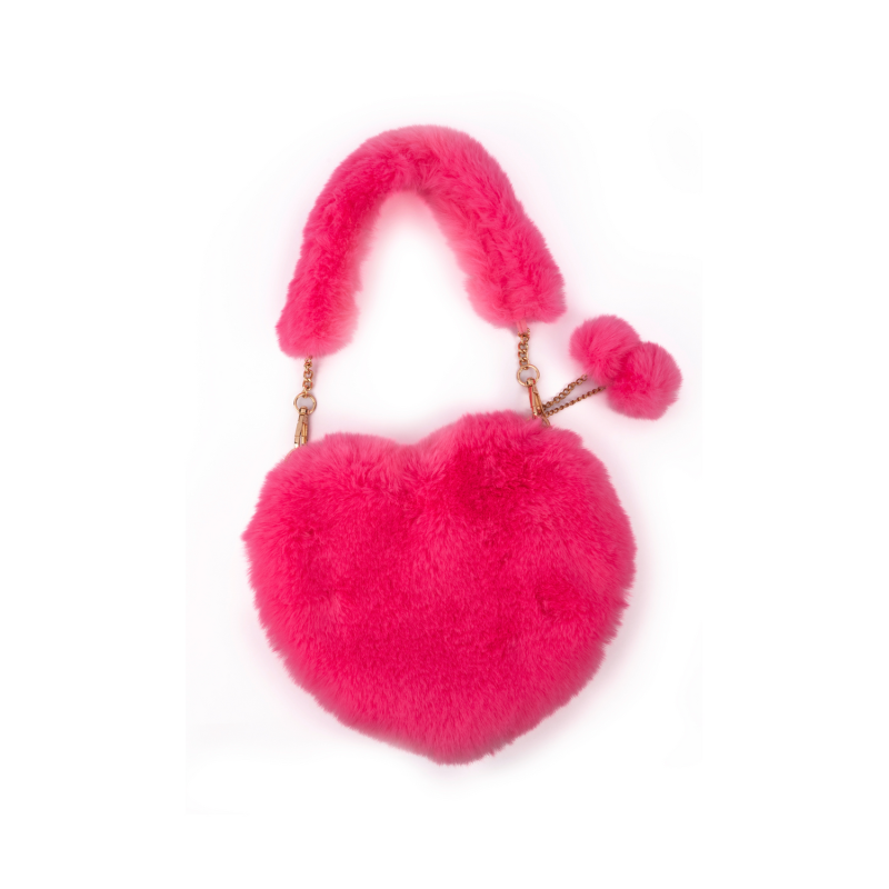 Denne søde hjerteformede plys taske er perfekt til at opbevare små skatte og vil være prikken over iét til ethvert outfit!