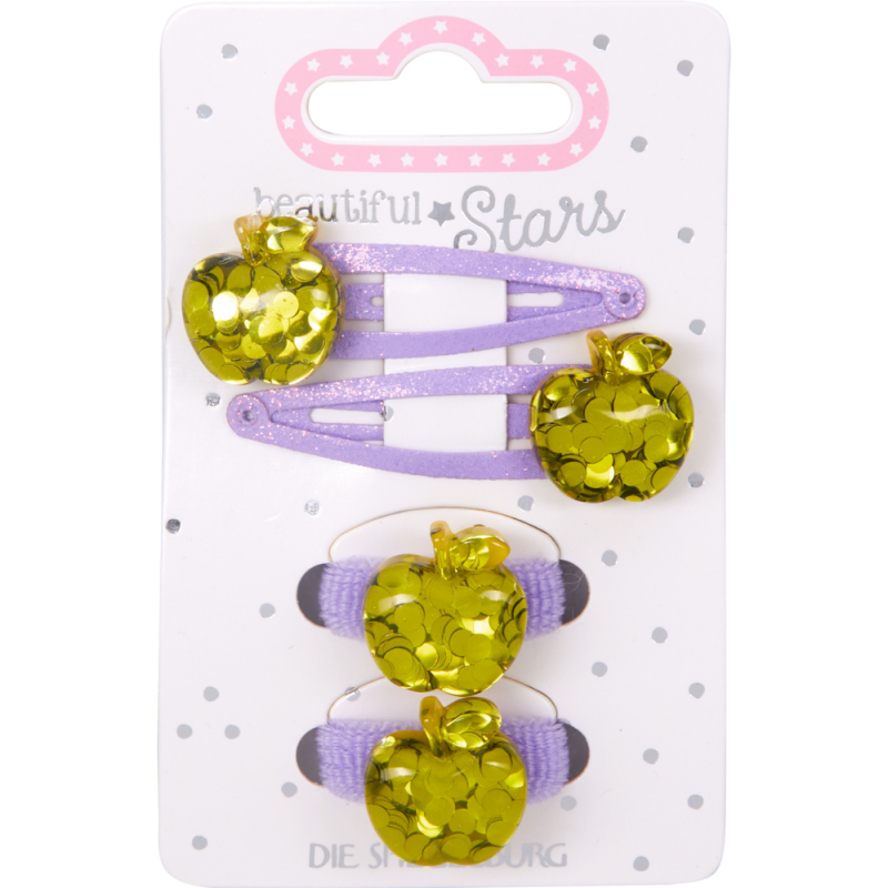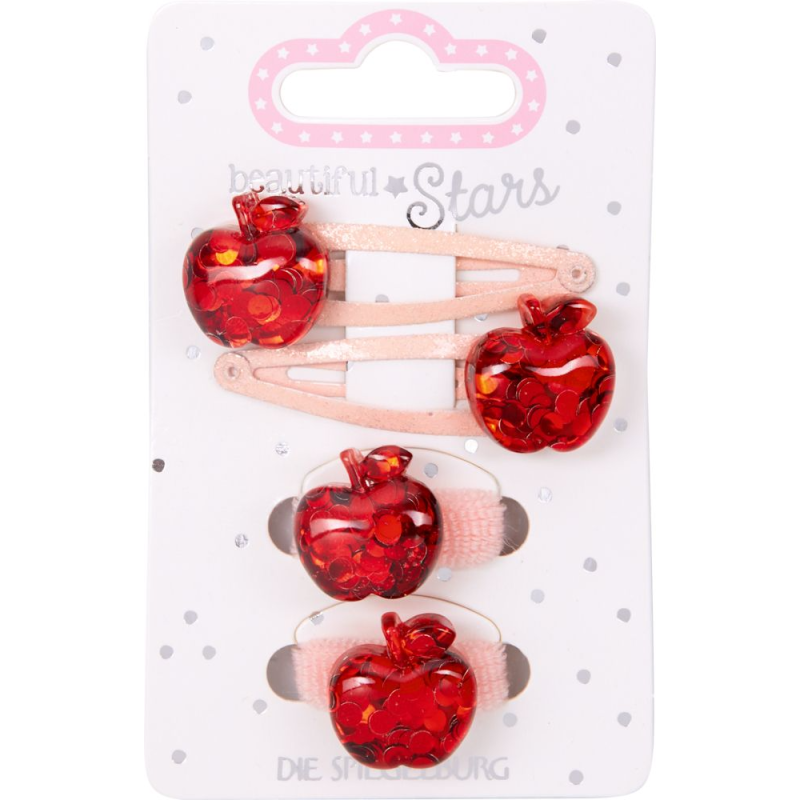 Bemærk at prisen er for 1 sæt Æble hårklips & elastikker i Assorterede farver