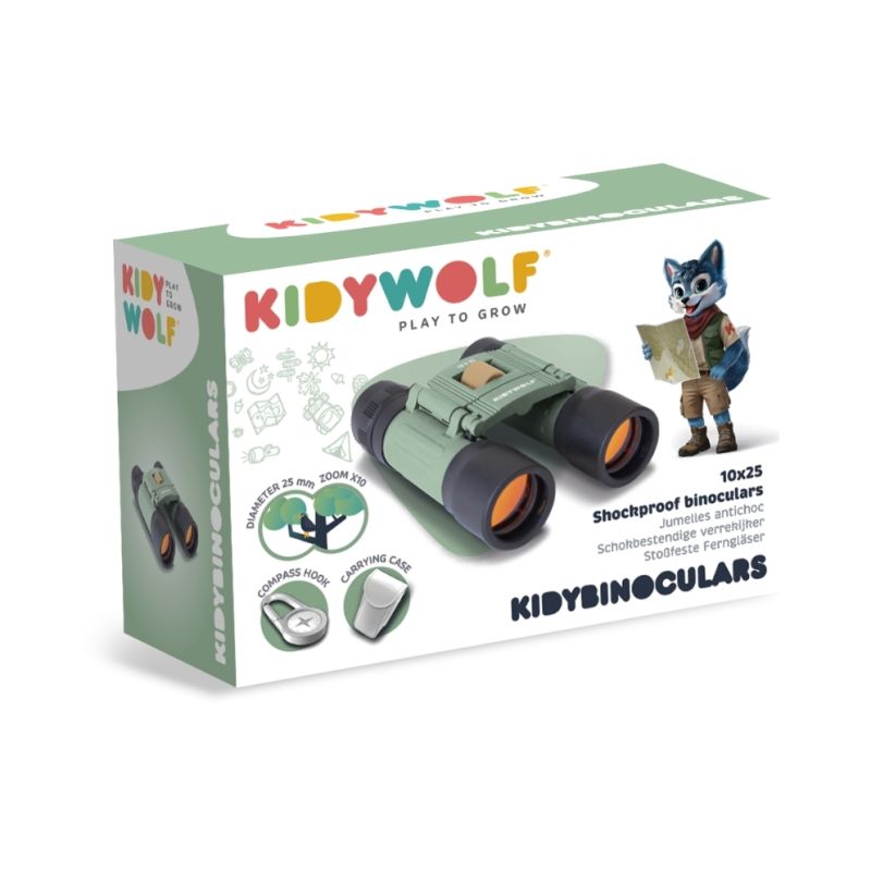 KidyBinoculars er udviklet særligt til børn og har et 10x zoom og 25 mm linse, som giver et klart og præcist udsyn, uanset om barnet kigger på fugle i haven, sejlbåde ved stranden eller dyr i skoven. Kikkerten er kompakt, let og stødabsorberende, så den kan holde til både eventyr, ferier og udflugter. Den er nem at tage med overalt takket være den medfølgende rem og opbevaringstaske, som gør den ideel til små hænder og store opdagelsesrejsende.