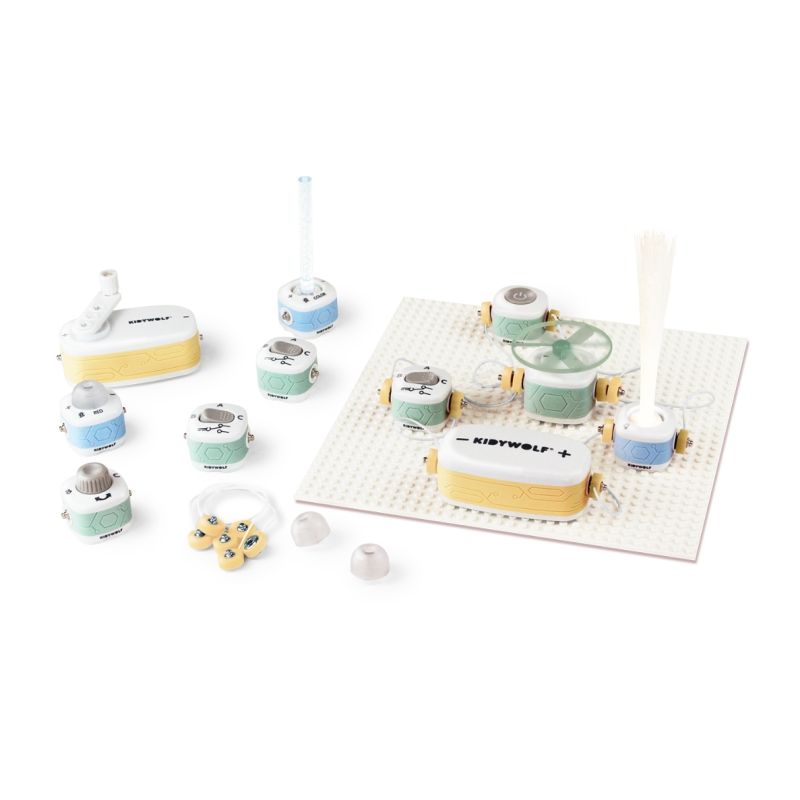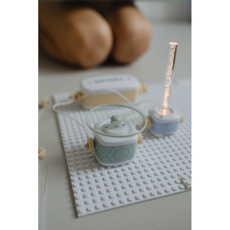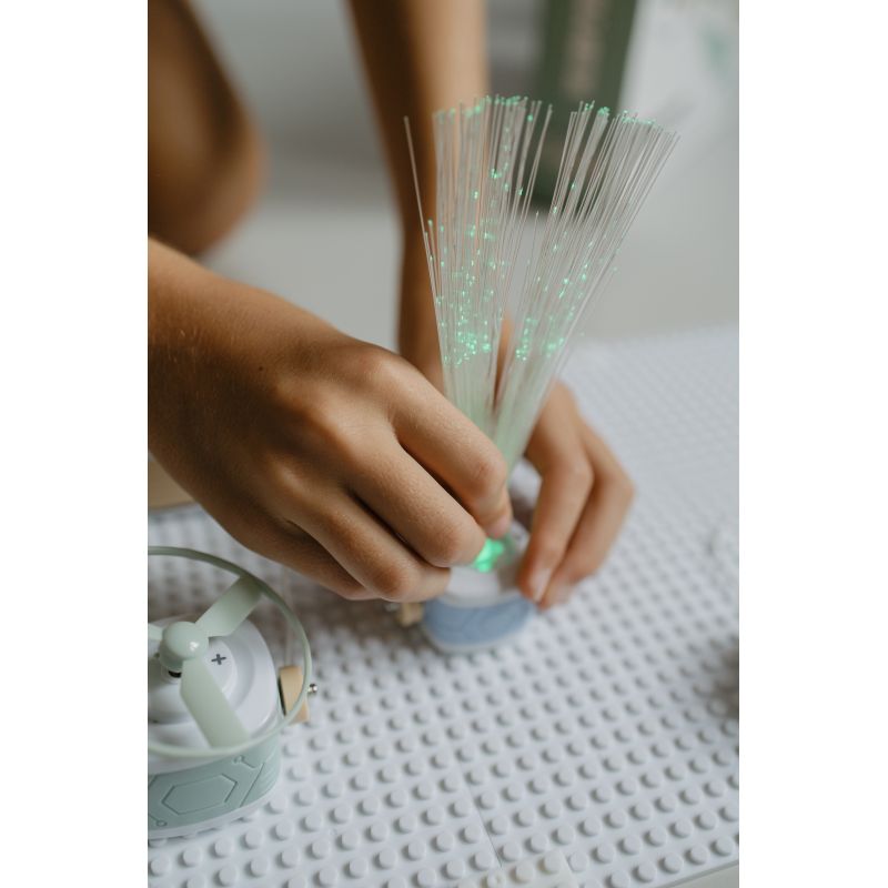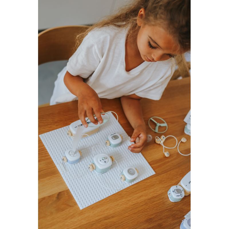 Med dette geniale startsæt kan barnet bygge sine første elektriske kredsløb og opleve, hvordan lys, motorer og bevægelse fungerer sammen. De 11 medfølgende blokke – som blandt andet indeholder motor, LED-lys, propeller og kontakt – sættes nemt sammen med smarte klik-forbindelser, helt uden brug af værktøj.