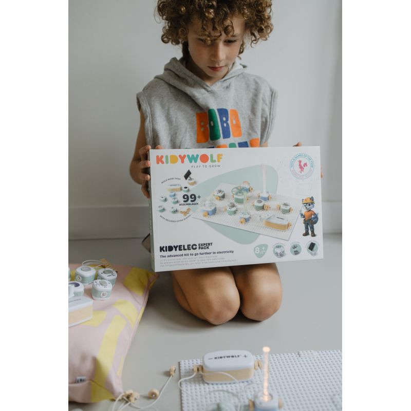 KidyElec er skabt til børn fra ca. 6 år og er perfekt til små forskere, der elsker at bygge, teste og opdage, hvordan ting virker. Et fantastisk valg til regnvejrsdage, familieprojekter og tidlige science-eventyr.