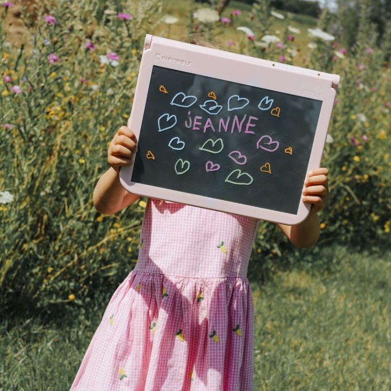 KidyDraw Pro er bærbar og genopladelig med USB-C stik, og den har magnetisk låg, gummifødder og praktisk rum til tusch – lige til at tage med på farten eller bruge derhjemme.