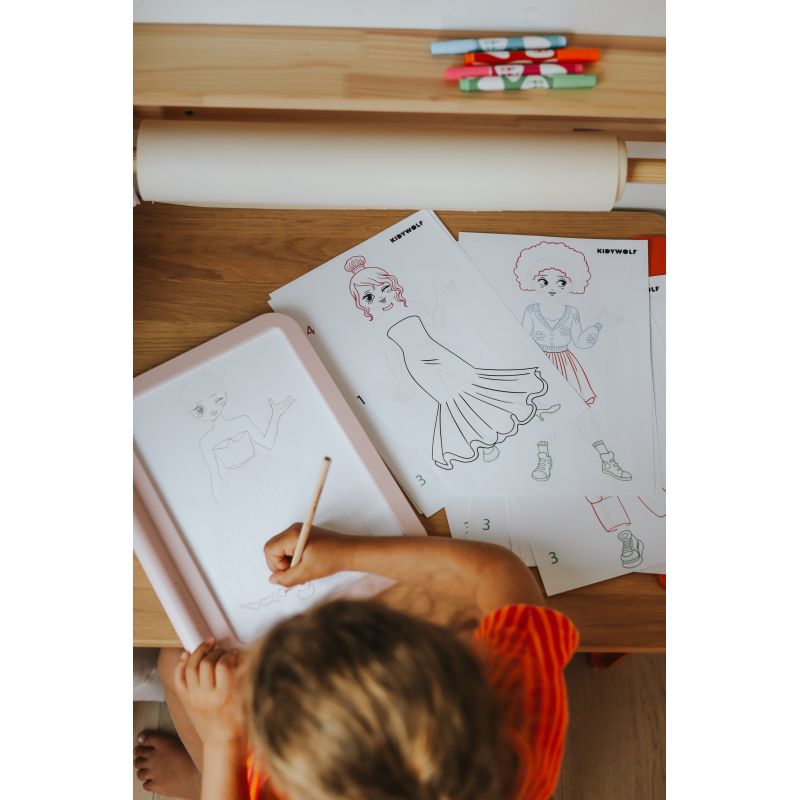 Lad barnet træde ind i modeverdenen og slippe kreativiteten løs med KidyDraw Pro – Fashion Designer Light Tablet. Her bliver barnet sin egen lille designer, der kan skabe outfits, accessories og mønstre i utallige kombinationer – præcis som på et rigtigt modeatelier. Med over 1.000 designmuligheder kan barnet lege med silhuetter, farver og detaljer, der udvikler både fantasi, formsans og kreativitet.