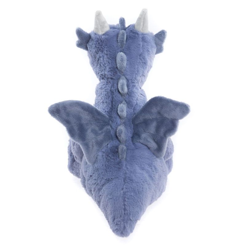 Denim Blue Draco Drage er en eventyrlig og blød ven, der bringer magien helt tæt på. Med sin dybblå pels, blide pigge og små, bløde vinger ligner han en drage hentet direkte ud af et børneeventyr. Han elsker at tage barnet med på fantasifulde rejser – fra fortryllede slotte til hyggelige drømmeland – og er lige så god til at beskytte søvnen, som han er til at give varme kram.