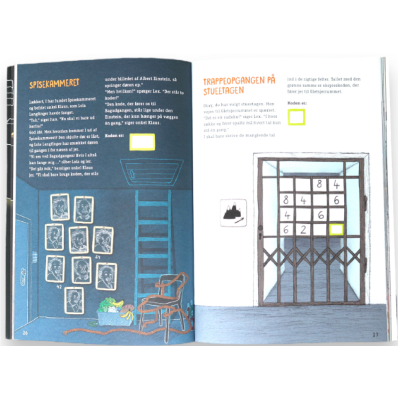 Med sit FSC-certificerede papir og smukke illustrationer er bogen skabt i en kvalitet, der holder til mange timers udforskning og gentagelser. Her venter en verden fuld af hemmeligheder – og kun barnet kan hjælpe Milla og Lex med at befri Klaus og standse Lola Langfinger, før hun slipper væk med museets skatte.
