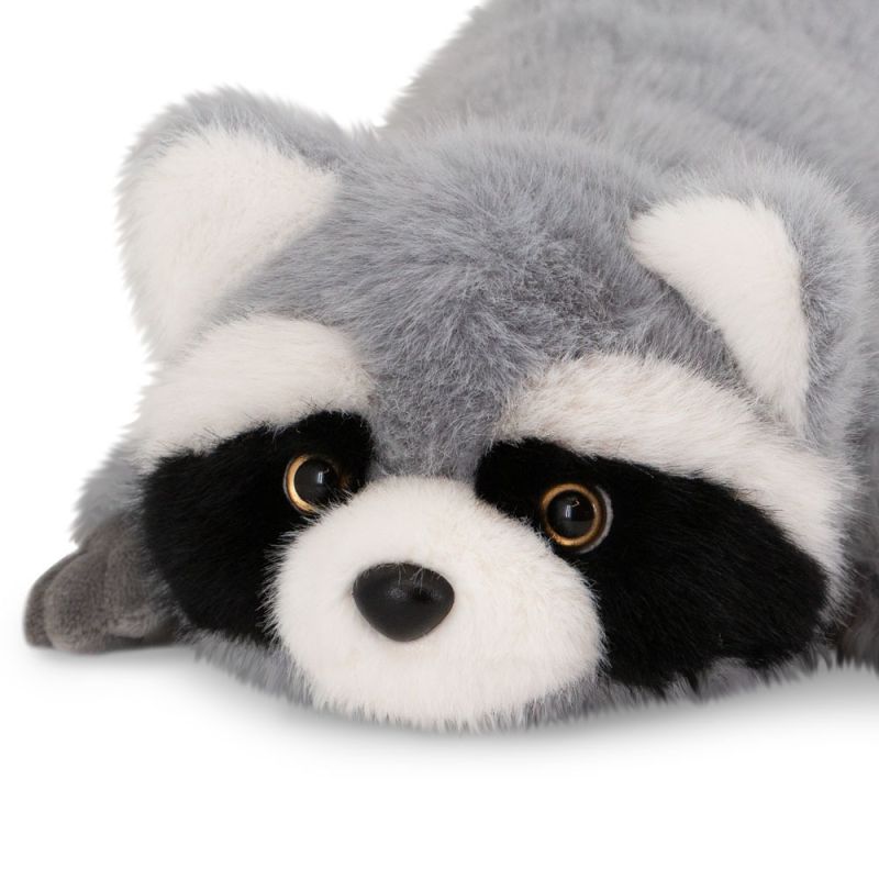 Pelsen er lavet af det karakteristiske ultrasofte materiale, der har gjort The Softest-serien så elsket hos både børn og voksne. Halen er stribet og fluffy, og masken omkring øjnene giver vaskebjørnen sit genkendelige, nuttede udtryk – lige som barnet kender det fra naturens dyr og deres eventyrlige historier. Selve formen er lang og afslappet, som om vaskebjørnen har lagt sig til rette og bare venter på næste kram.