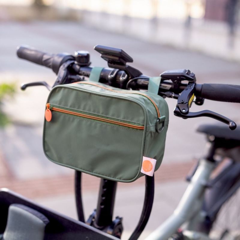 Tasken har en kompakt størrelse, der gør den let at bruge både som styrtaske og som crossover-taske. Med de to solide velcroremme på bagsiden kan den hurtigt sættes fast på cykelstyret eller barnevognsstyret, så barnet eller moren altid har nøgler, telefon, snacks eller små skatte lige ved hånden. Når turen er slut, kan skulderremmen klikkes på, og tasken bruges som en almindelig lille taske – perfekt til skole, sport, bytur eller fritid.