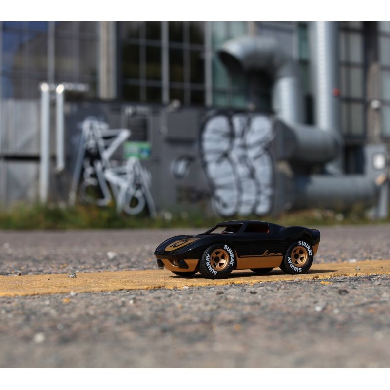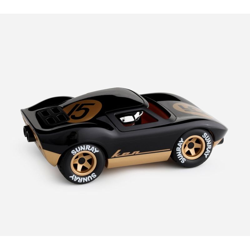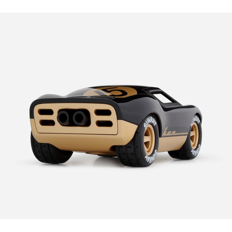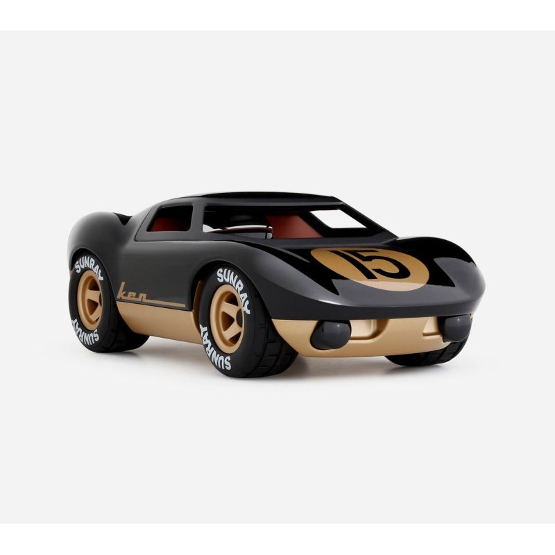 Ken Cave kommer i dyb sort og guld – en farvekombination, der får bilen til at ligne et lille kunstværk på hjul. De brede Sunray-dæk, den gyldne 15-markering og den strømlinede silhuet oser af retro racing og gør den uimodståelig som både legetøj, designobjekt og samlerbil. Den er oplagt som gave til barnedåb, fødselsdage, studentergaver – og ikke mindst til voksne, der elsker smukt design og ægte racerarv.