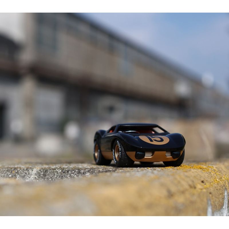 Modellen er fremstillet i kraftig ABS-plast, der giver en glat og eksklusiv overflade, afsluttet med højglans UV-beskyttet klar lak, så bilen bevarer sin glød i mange år. Den ligger tungt og solidt i hånden, nøjagtigt som en rigtig lille racer skal, og de bløde gummihjul ruller silkeblødt over gulvet. Playforever er kendt for at skabe biler, der holder livet igennem – både i legen og som smukke interiørdetaljer i hjemmet.