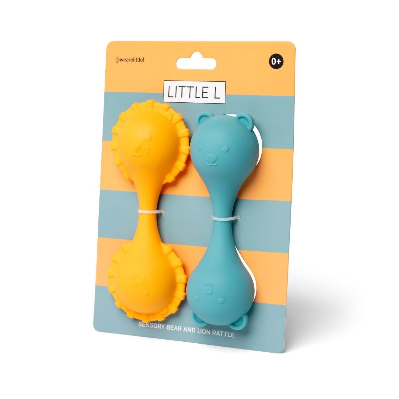 De søde Løve- og Bjørne-rangler fra Little L er skabt til de allerførste sanseeventyr. Med deres bløde, føjelige silikone, de fine dyrerelieffer og de milde ranglelyde bliver de hurtigt en favorit i hænderne på babyen. Ranglerne er 16 cm lange, perfekte til små fingre, og den runde bjørneende kan rulle hen over gulvet – så babyen får lyst til at række ud, kravle efter og udforske endnu mere.