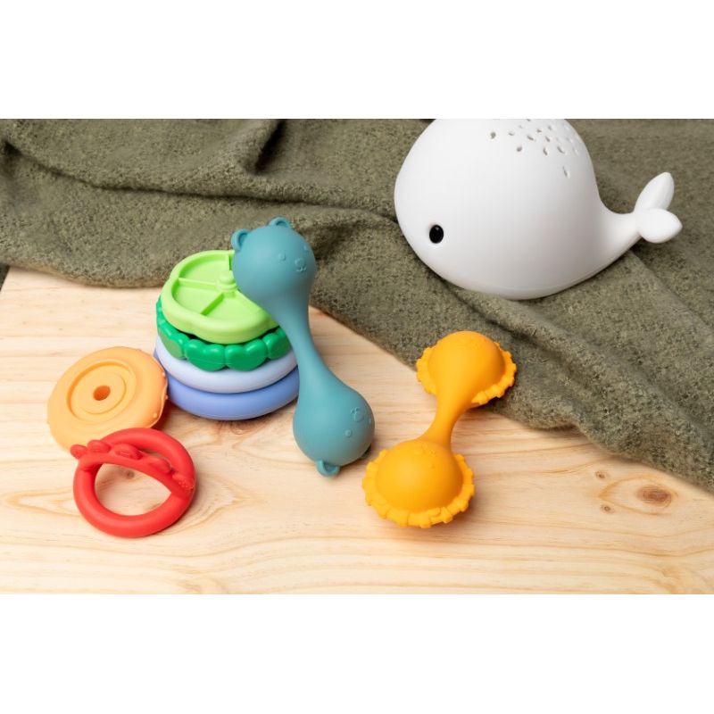Little L er kendt for deres sikre, bløde og gennemtænkte designs, skabt i BPA-fri, fødevaregodkendt silikone, der både kan tygges på og bruges som sansestimulerende legetøj. Overfladerne på ranglerne er dejligt taktile med små detaljer, der stimulerer babyens nysgerrighed og sanser, mens formen giver et naturligt og behageligt greb.