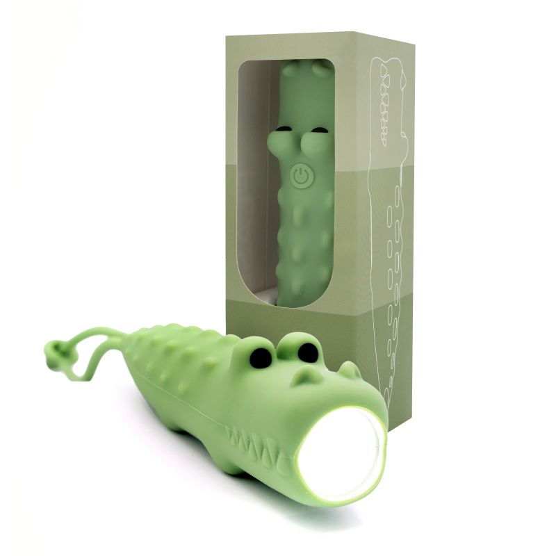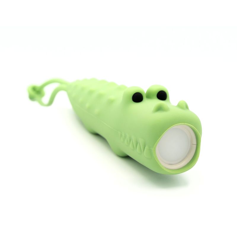 Den søde krokodille-lommelygte fra Little L er allerede blevet en favorit hos børnene i Banditten – og det er ikke svært at forstå hvorfor. Den bløde silikone gør den rar at holde om, også for små hænder, og dens sjove form giver følelsen af at have sin helt egen lille ven med på eventyr. Trykket midt på “ryggen” vækker lyset til live med et enkelt klik, og barnet kan vælge mellem to lysstyrker alt efter, om der skal lyses trygt under dynen eller laves skyggeteater på væggen.
