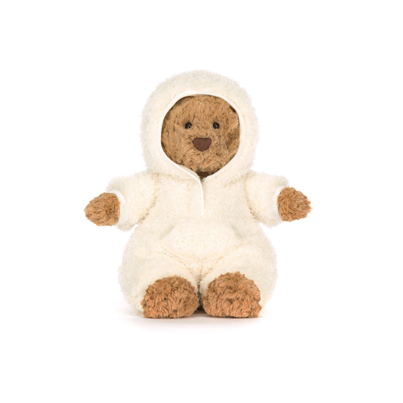 Den fine brune Bartholomew Bear har et meget sødt udtryk og er iført en flot hvid aftagelig heldragt.