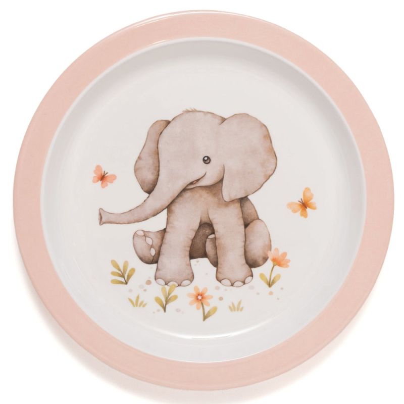 Lille elefant tallerken fra Petit Monkey bringer ro, varme og sød elefantmagi ind i barnets måltider. Den flade tallerken er dekoreret med den fineste lille elefant omgivet af blomster og sommerfugle i bløde nuancer, som skaber glæde og genkendelighed ved bordet.
