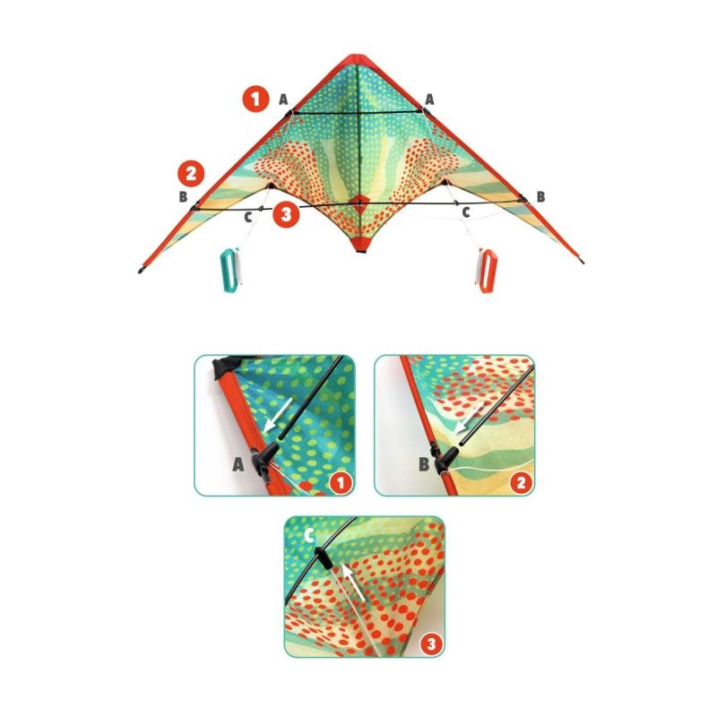 Djeco er kendt for sit æstetiske design og høje kvalitet, og Gigant Red Dots forener kunstnerisk udtryk med funktionel konstruktion. At flyve med en styrbar drage styrker koordination, koncentration og motorik – samtidig med at det giver en følelse af mestring og fartfyldt glæde.