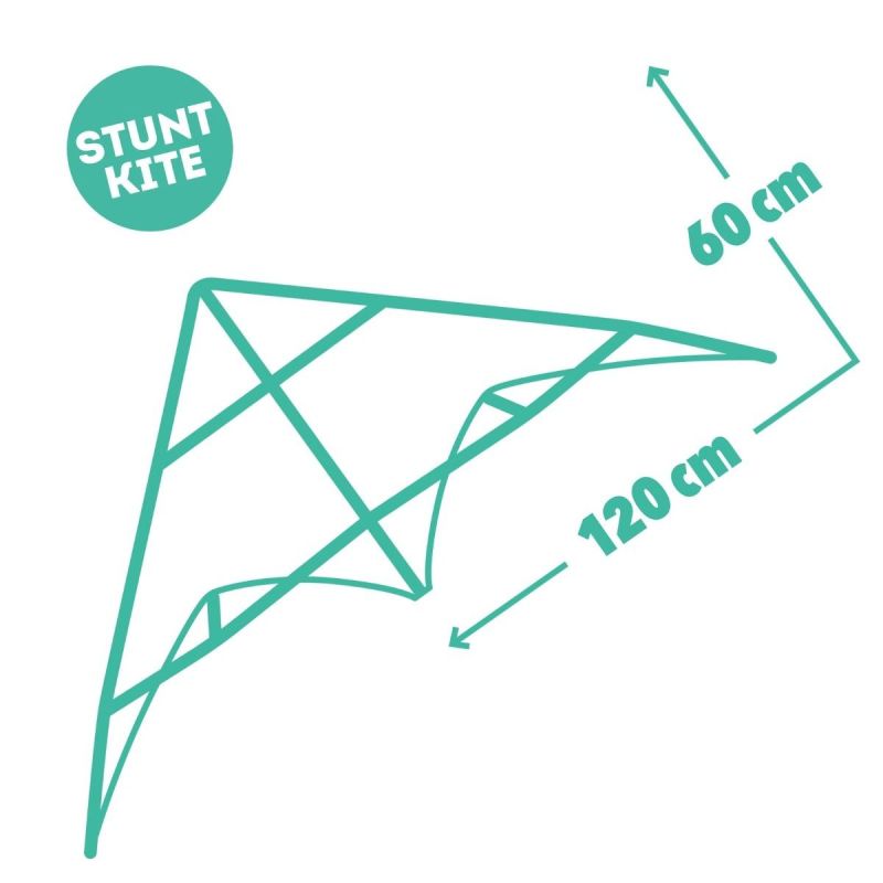 Denne 2-liner drage måler 120 cm i bredden og 60 cm i højden og er perfekt som introduktion til styrbare drager. Med to separate liner får barnet fuld kontrol over bevægelserne i luften. Det betyder, at dragen kan dreje, dykke og stige præcist – og at barnet kan begynde at lære små tricks og kontrollerede manøvrer. Her handler det om teknik, timing og fornemmelse for vinden.