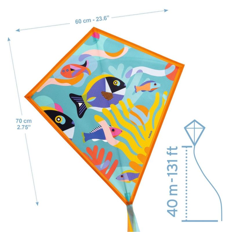 Havet drage fra Djeco er en farverig og legende klassisk drage, der bringer undervandsverdenen op på himlen. Med sit smukke motiv af fisk, bølgende tang og klare havfarver svæver den som et lille stykke ocean over strand og park.