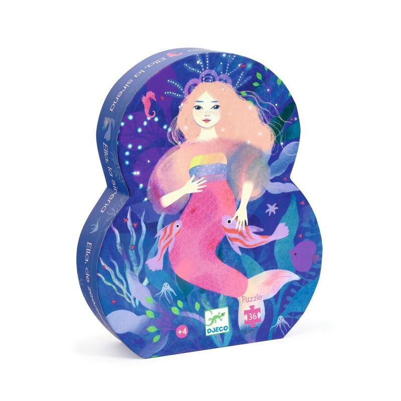 Det særlige ved dette puslespil er den dekorative silhuetæske, formet som havfruen Ella selv. Æsken gør ikke bare opbevaringen nem – den bliver også en fin detalje på børneværelset, hvor den kan stå fremme som en del af indretningen.