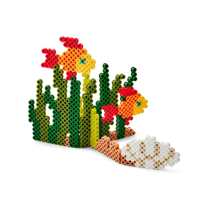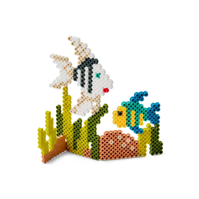 Her i web-shoppen og i vores fysiske butik Banditten på Østerbrogade 138 har vi et stort udvalg i perler i vores kreative rum, og her kan vi præsentere en æske med 2000 Midi perler samt et stk. stor firkantet stiftplade nr. 234, motivark, vejledning og strygepapir. Motivarket viser flotte farvede fisk, som kan "samles" og derved får en 3D effekt.