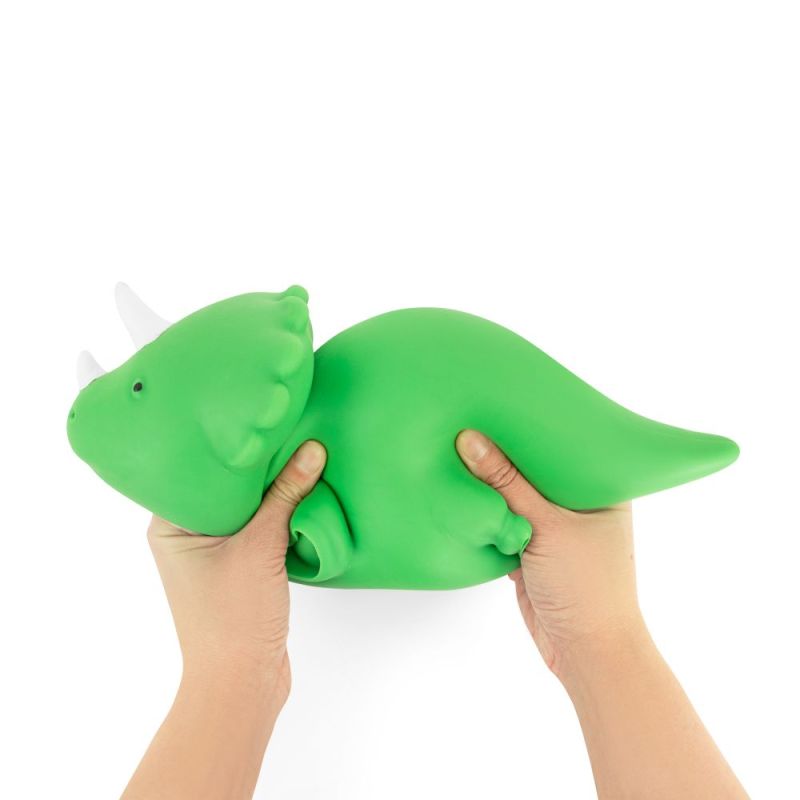 Mød den grønne kæmpe! Denne Jumbo Squishy Dinosaur fra Keycraft er en stor, blød og herligt klembar triceratops, som næsten beder om at blive taget op og krammet. Den er vender langsomt tilbage efter hvert klem – og det er præcis dét, der gør den så sjovt at lege med igen og igen.