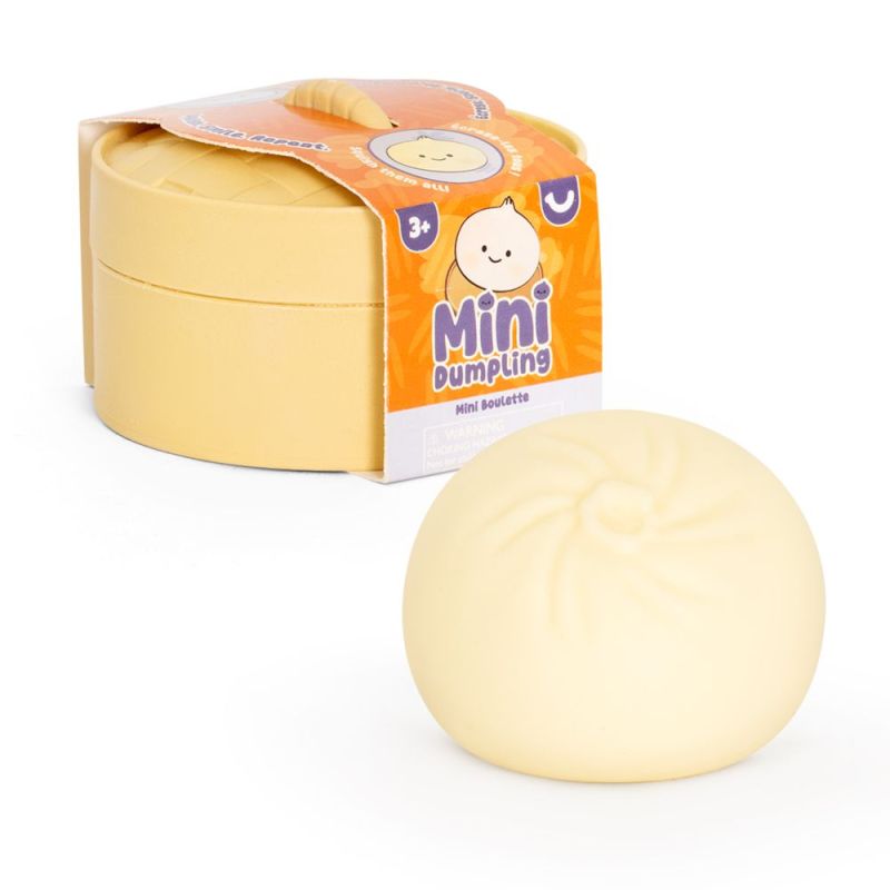 En lille dumpling, der næsten ser for sød ud til at lege med – men som heldigvis er lavet til netop det! Denne bløde squeeze-dumpling ligger i sin egen lille dampkurv og indbyder straks til at blive klemt, trykket og strakt i hænderne.