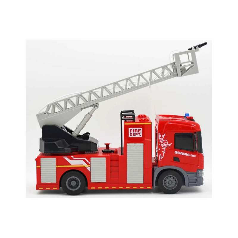 Scania Brandbil med Stige, Lys & Lyd er en fed og indholdsrig fødselsdagsgave til alle der er vilde med biler, brandmænd og aktiv leg.